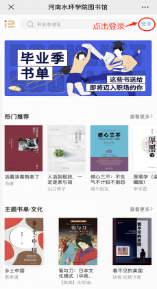 进入河南水利与环境职业学院图书馆网站,点击“电子资源”—“掌阅精选新书、精品书数据库(试用)”进入PC端图书馆主页之后,按照如下步骤点击登录后,即可免费畅读: